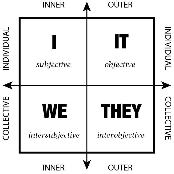 This matrix is essentially a four-quadrant coordinate system, where each quadrant represents a distinct domain of reality. Through it, almost anything can be examined – and it is worth doing so – in order to take into account all the essential and relevant aspects of whatever we are seeking to understand.